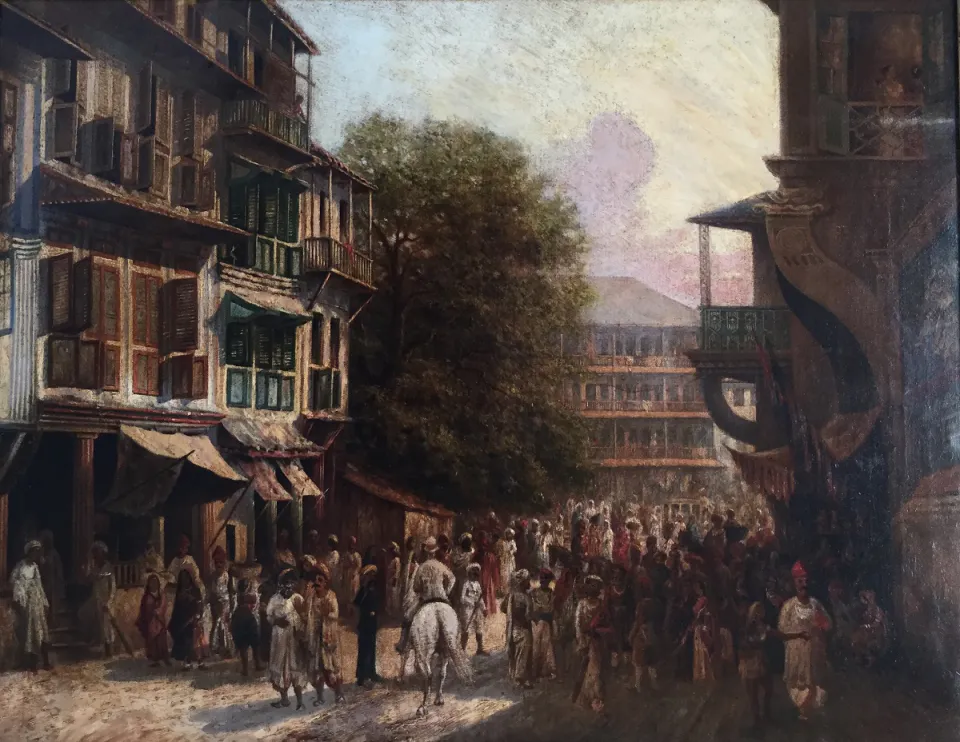 EDWIN-LORD-WEEKS-1800-BOMBAY-STREET-SCENE-OIL-ON-CANVAS-24-BY-20-INCHES