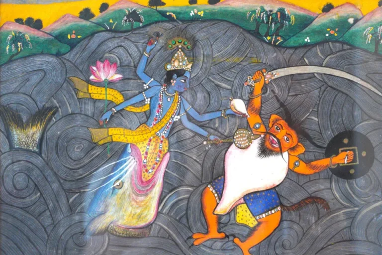 A Basohli/Jammu school miniature of the Matsya Avatara. 18th-19th Century